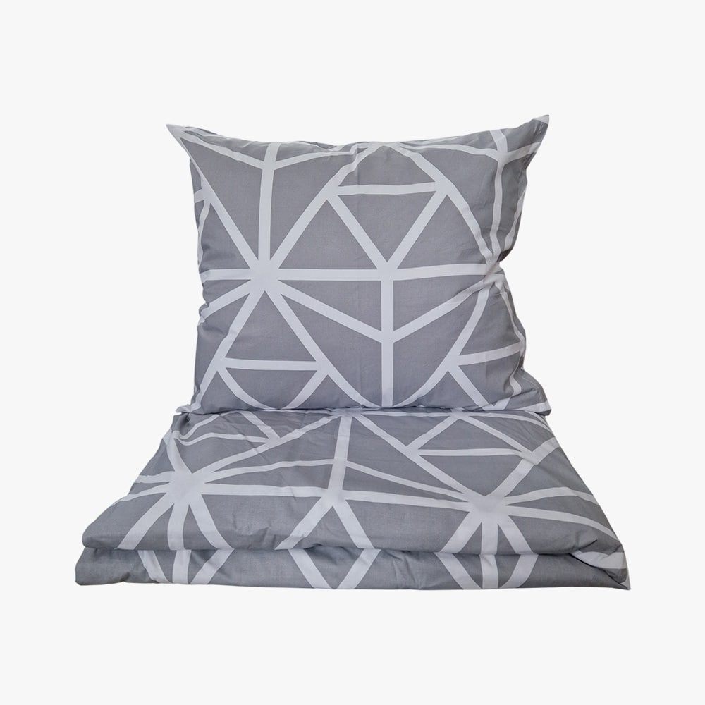 Pościel bawełniana 160×200 wzór 1033 to idealny wybór dla osób, które cenią wygodę, jakość i elegancki wygląd sypialni. Minimalistyczny deseń złożony z rytmicznie ułożonych, białych strzałek na tle w kolorze antracytu. Prosta, dwukolorowa kompozycja jest niezwykle stylowa i uniwersalna, pasując do wielu nowoczesnych aranżacji. Graficzny motyw świetnie sprawdzi się zarówno w sypialni dorosłej, jak i młodzieżowej.