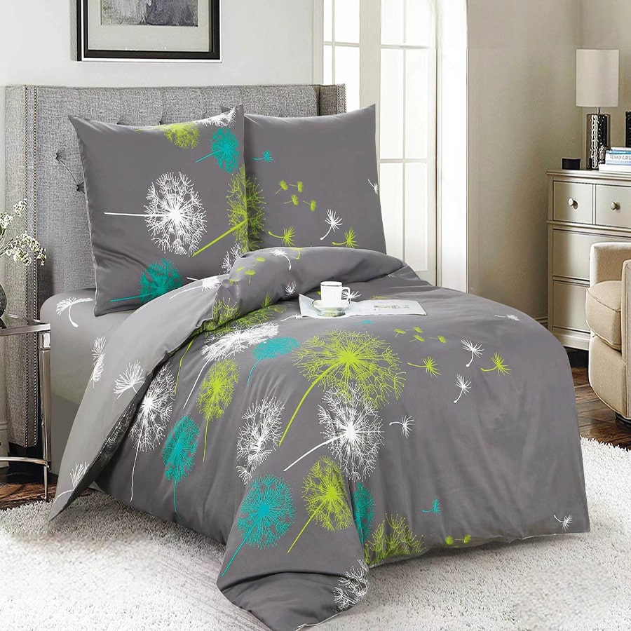Pościel bawełniana 160×200 wzór 4912 to doskonały wybór dla osób, które cenią wysoką jakość, komfort oraz stylowy wygląd sypialni. Została wykonana w 100% z bawełny o satynowym splocie, dzięki czemu jest miękka, przewiewna i przyjemna w dotyku. Stylizowane główki dmuchawców w energetycznych odcieniach zieleni i turkusu kontrastują z klasyczną bielą. Całość przedstawiona jest na gładkim, grafitowym tle, tworząc nowoczesny motyw botaniczny.