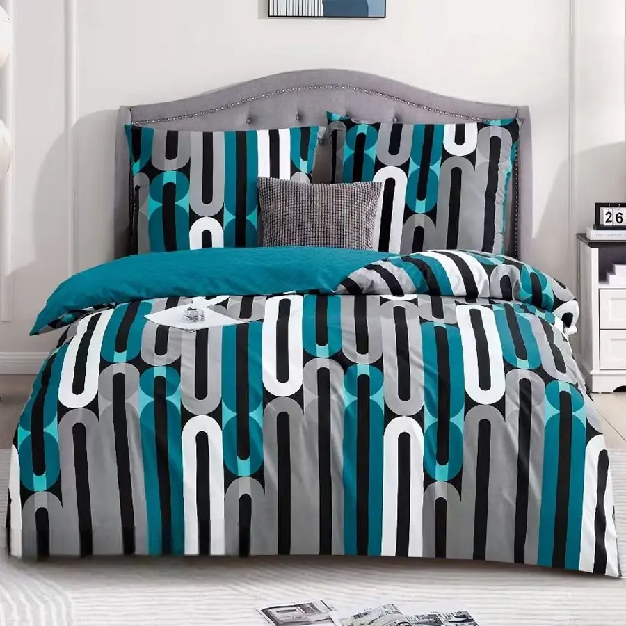 Dynamiczny wzór złożony z powtarzających się łuków i linii w turkusie, bieli, szarości i czerni nadaje tej pościeli unikalnego charakteru. Kompozycja barw wprowadza do wnętrza świeżość i oryginalność. To propozycja dla osób lubiących mocne akcenty w sypialni.