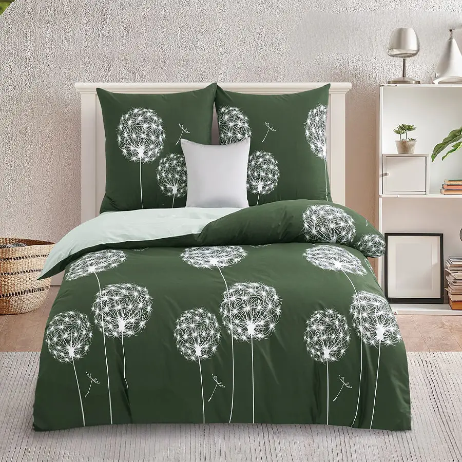 Połączenie intensywnej zieleni z czystą bielą tworzy niezwykle świeżą i elegancką kompozycję. Motyw dmuchawców we wzorze jest subtelny i pełen lekkości, dzięki czemu idealnie pasuje do przytulnej sypialni. To wzór, który sprzyja relaksowi i wyciszeniu.