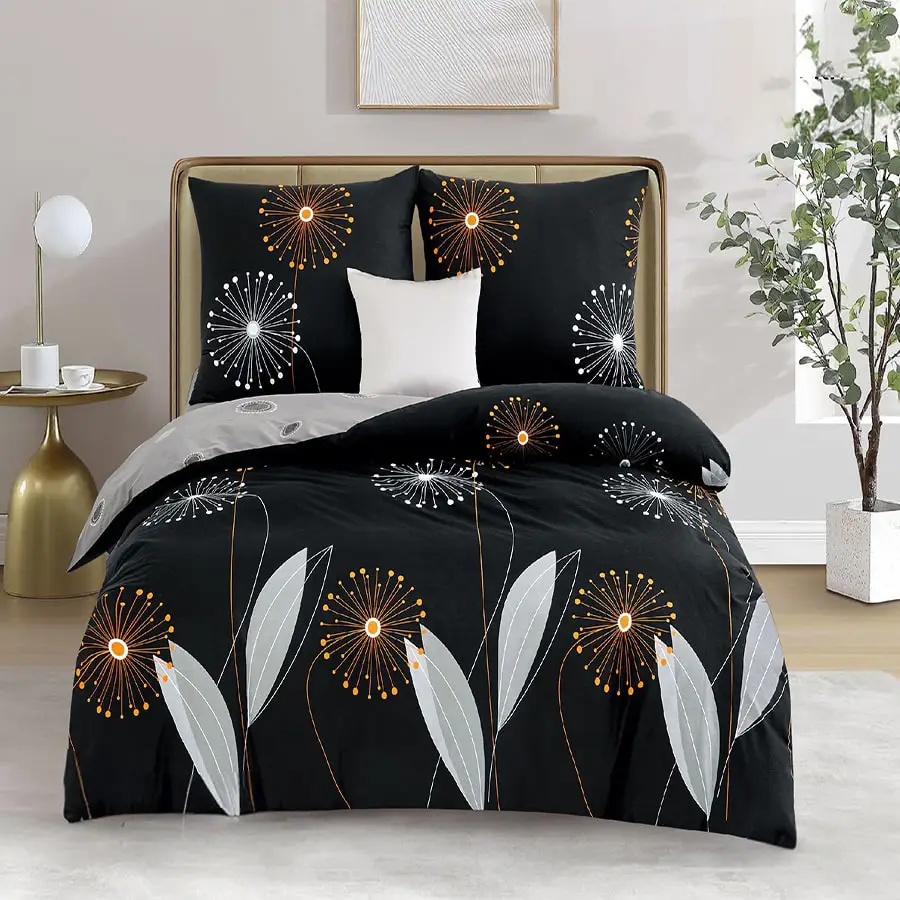 Połączenie botanicznej delikatności dmuchawców z nowoczesną, kontrastową kolorystyką tworzy niezwykle uniwersalny produkt. Czerń, biel i złoto-pomarańczowy akcent sprawiają, że wzór pasuje zarówno do wnętrz minimalistycznych, jak i glamour. To stylowy i funkcjonalny dodatek do każdej sypialni.