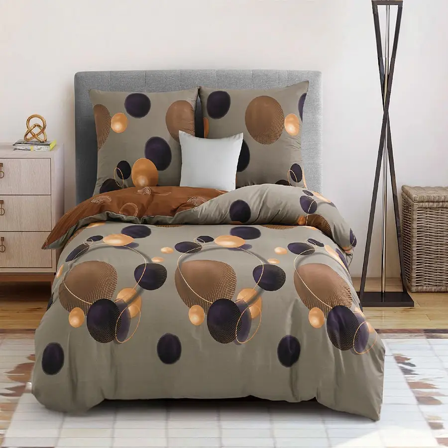 Pościel bawełniana wz. 6321 to stylowy i praktyczny wybór dla osób, które cenią wysoką jakość oraz nowoczesny wygląd sypialni. Wykonana w 100% z bawełny o satynowym splocie, jest wyjątkowo miękka, przewiewna i przyjemna w dotyku. Ten komplet pościeli wyróżnia się unikalnym, abstrakcyjnym wzorem, który ożywi każdą sypialnię. Geometryczne formy w odcieniach fioletu i miedzi zostały podkreślone złotymi liniami, tworząc efektowny i spójny deseń. Dodatkowo, satynowy splot delikatnie odbija światło, dzięki czemu pościel zyskuje subtelny połysk oraz elegancki wygląd.